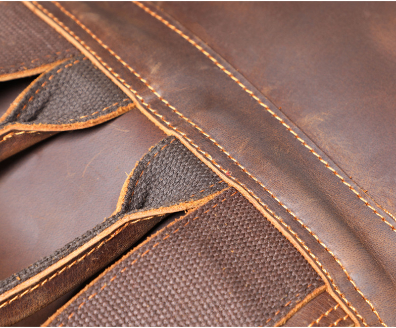 • Full-grain genuine leather combined with sturdy canvas for strength and texture