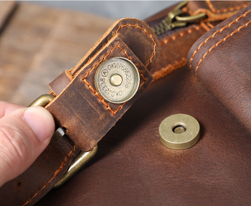 • Vintage brass hardware with an aged finish for a timeless, rugged look