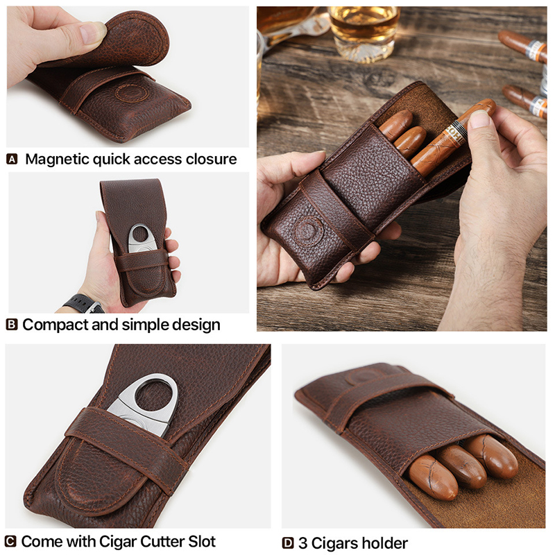 Vintage Genuine Leather Cigar Storage Bag AB04